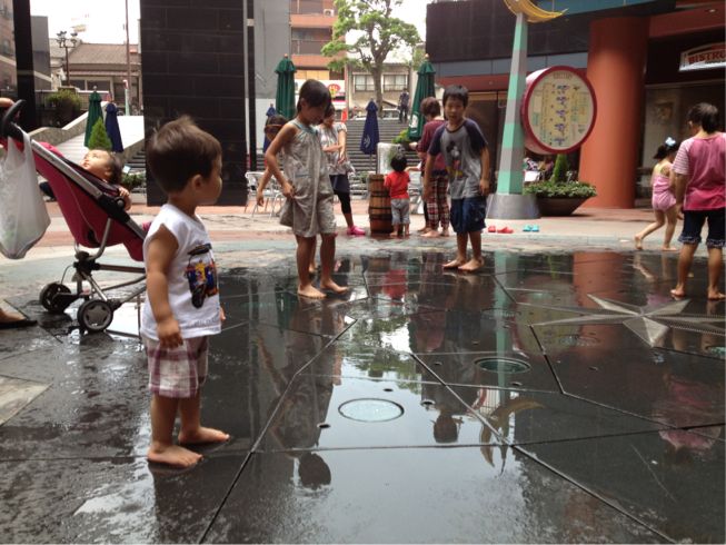 行ってすぐ、噴水ショーが始まり、「コワイ」