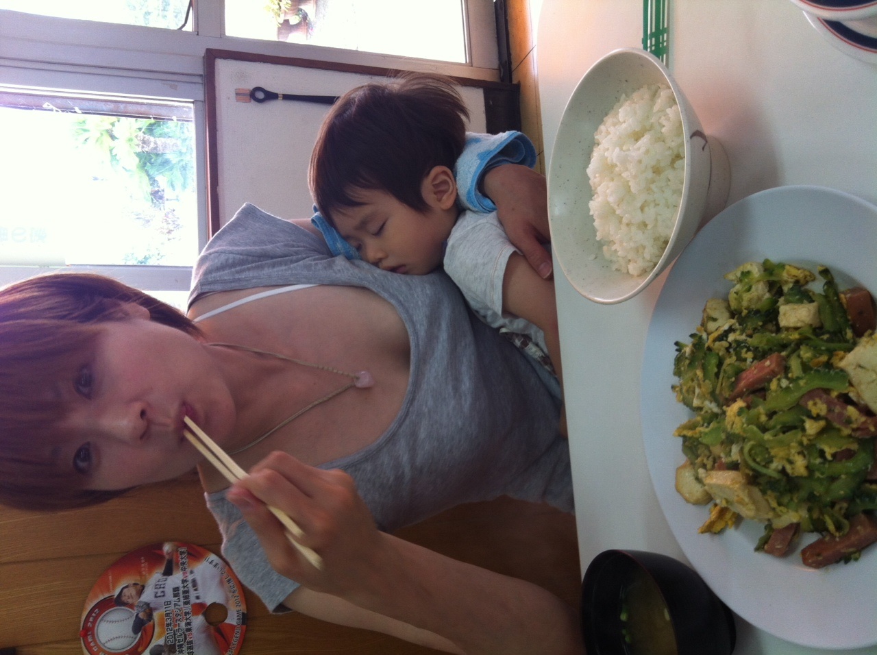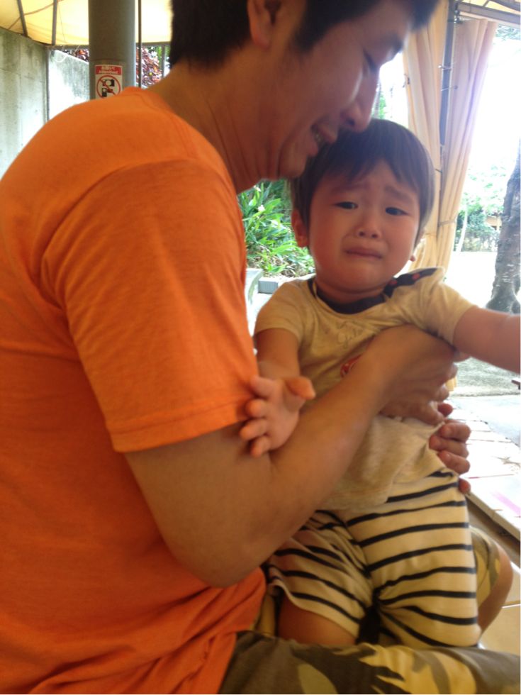 途中でねんねしちゃった晴太朗を抱っこしたまま。