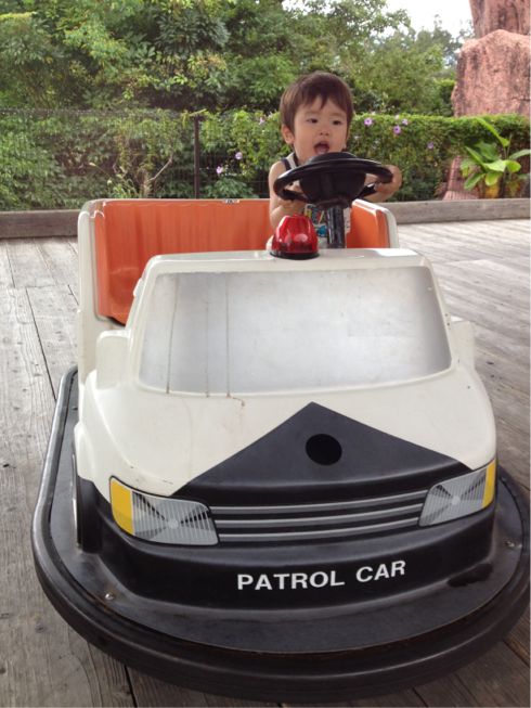 鳥さんと触れ合い、パトカー、消防車にも乗って、晴太朗、ごきげん♪