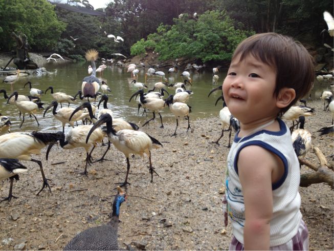 鳥のエサを始めに購入していたので、ダメもとで、鳥小屋(…とはいえ、かなーり広い)へ行くと、晴太朗は大喜び❤