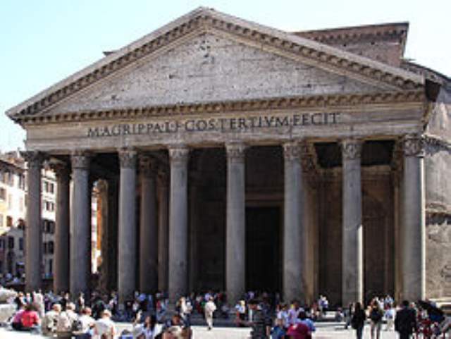 紀元前27年頃、初代皇帝アウグストゥスの側近アグリッパによって建造され、その後火災で焼失したものをハドリアヌスが再建し、現在に至っている。この世界最大の石造り建築は、ミケランジェロにより「天使の設計」と賞賛された。中には芸術家のラファエロや、統一イタリア初代国王ヴィットリオ・エマヌエーレ2世が眠っている。