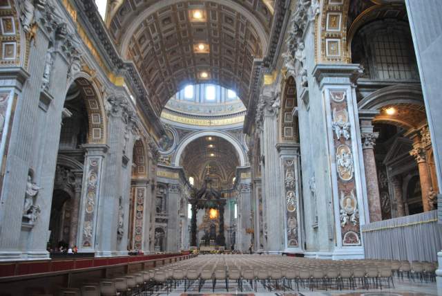 *サンピエトロ大聖堂の内部。左に入ると、巨匠「ミケランジェロ」作品が。