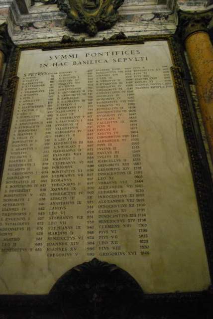 *左から2番目の写真は、歴代の教皇の名前がかかれているもの。
