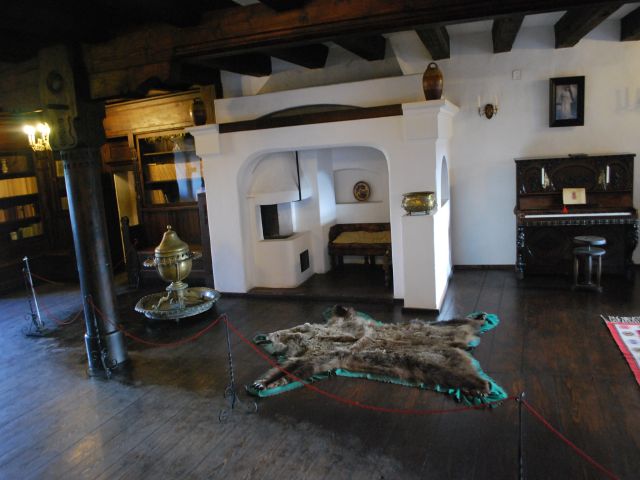 中・・・ブラン城の内部。暖炉の前には熊の毛皮!