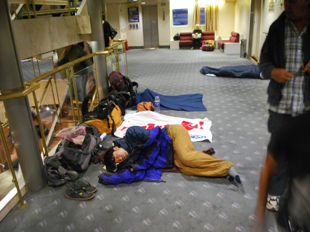 でも、オチはこんなもんです。。。。。。通路で雑魚寝。。。。。