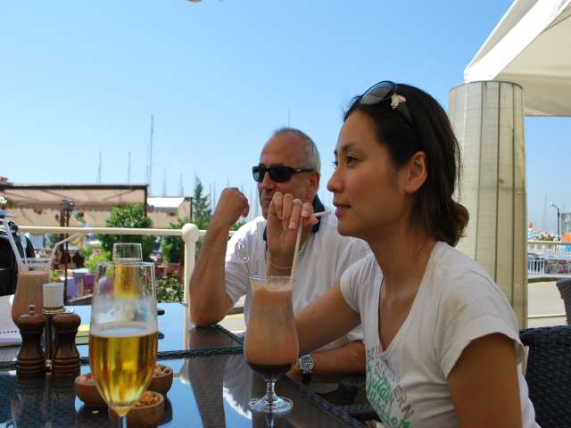 イルマズさんが船でやってくるとの事で、船着場のCAFEで待つ事に。