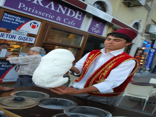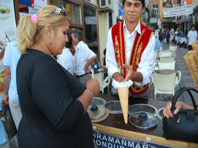⑨ブルーモスクの後、お決まりのトルコアイス!!この売り子さん、とってもお上手で、何度つかもうとしても、このアイスがつかめなかった・・・!