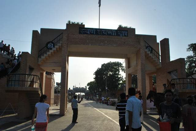 中:奥がパキスタン領。お互いの国旗を同じスピードで降ろしていくのが見物。
