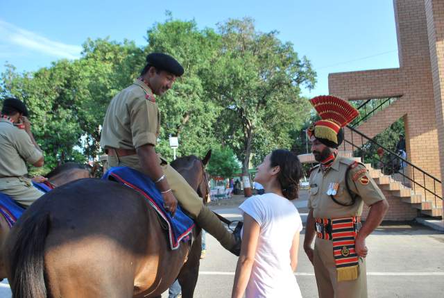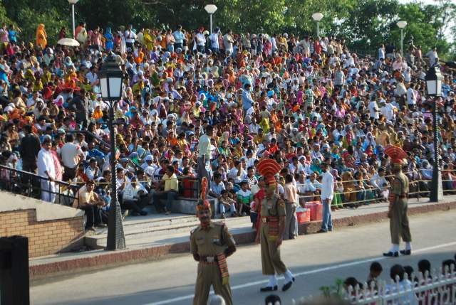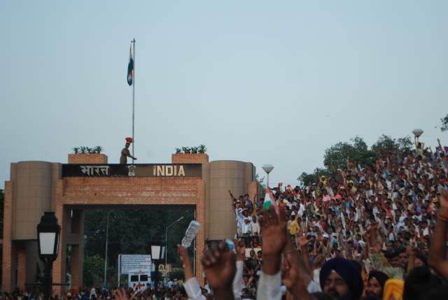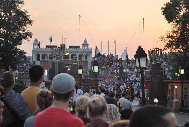 こういった事情を私達なりに勉強して、臨んだ「国境閉鎖式」!!とっても厳かな雰囲気で行われると思っていましたが、「ところがどっこい(死語??)」とはこの事ではないかと思うぐらい、始まる前から、かなりのお祭りモード。。。盛り上がるインド人!それに対抗するパキスタン人!恐らくワールドカップやWBC(野球)よりも盛り上がっているのではないか??思うぐらいの盛り上がり。