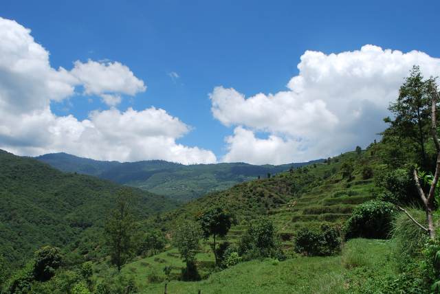 緑は濃く、空にはたくさんの雲が浮かんでいます。