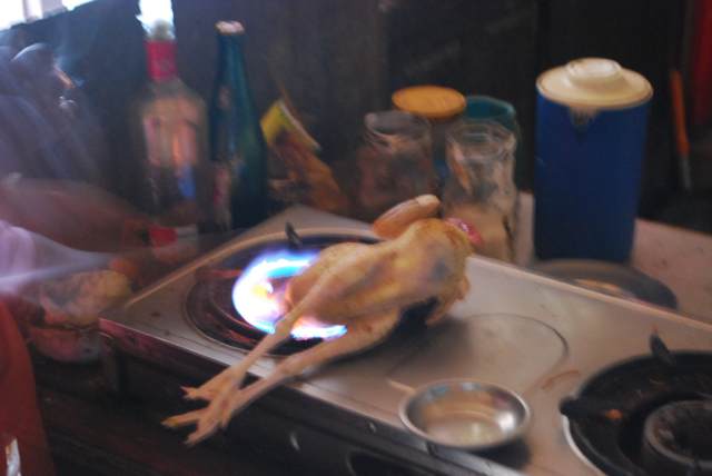 そうここは、目の前で鳥を絞めて、皮を剥き、食べさせてくれる所だったのです。この鳥も村の貴重な収入源との事で、有難く頂く事に!