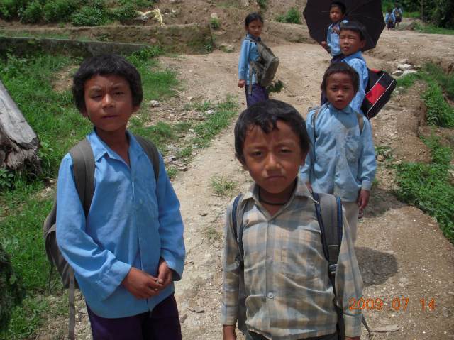 学校帰りの山岳民族の子達。