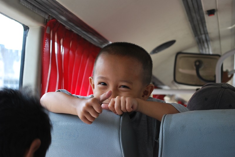 前の席にいた男の子と、顔だけのコンタクトを取りながら、着きました国境。