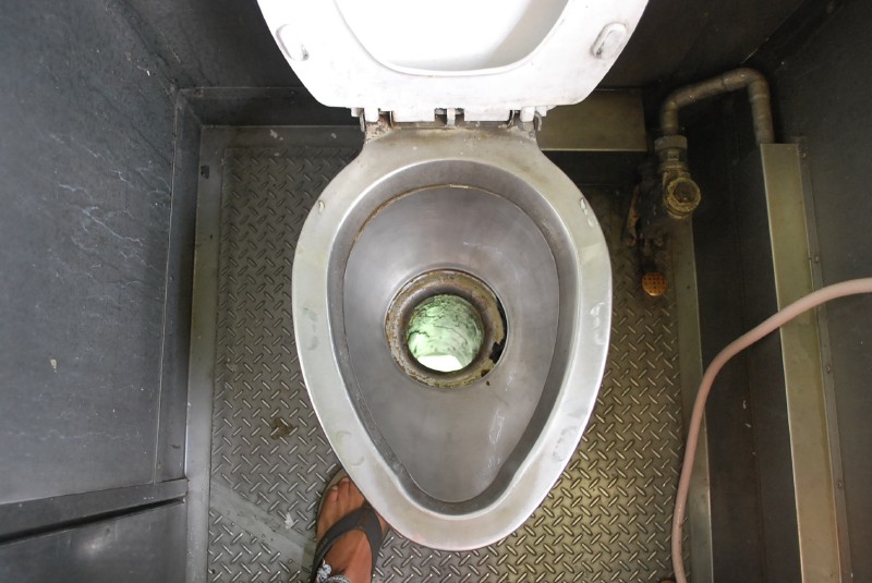 ①トイレは、すべて直接下の線路へ!!(写真分かりますか?線路上は多分・・・)