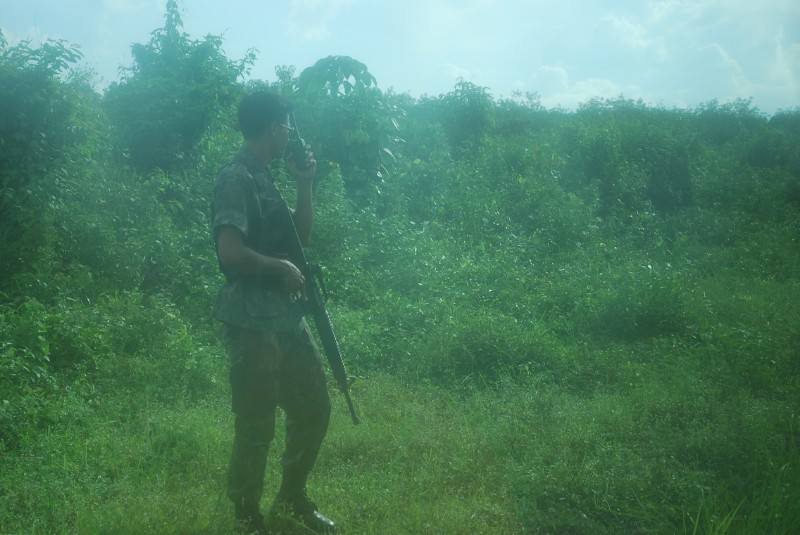 機関銃・防弾チョッキetcで武装した?タイの軍隊が何人も電車の中に。