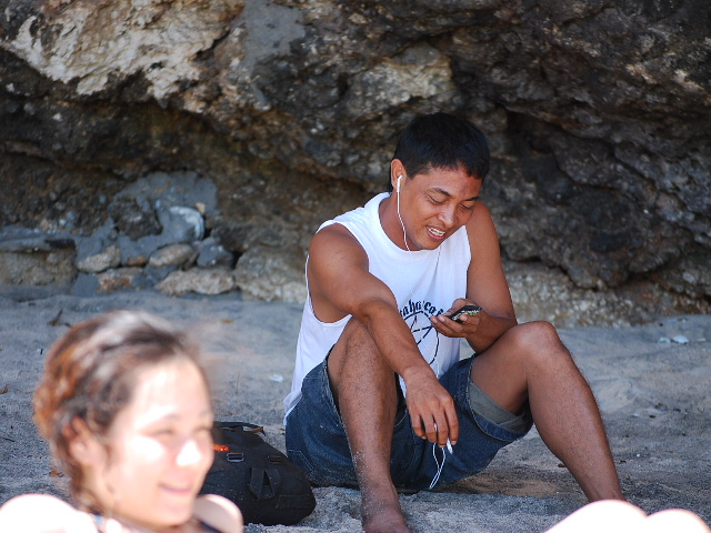 バリ初日に、知り合い結局最後ま色々とお世話になったバリ人。写真は僕らを海に連れて行ってくれた時に、時間潰しと思って「I POD」で落語を聞かせたら、声を出して爆笑していたぐらい、日本語が達者!