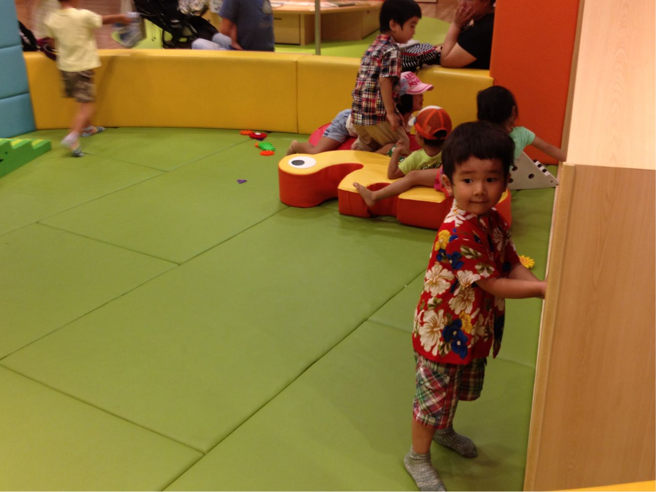 そこで。もう帰ろうかと思ったけど、それじゃぁ可哀想だから、ご飯たべて帰る事にして、その前におもちゃ売り場の前を通ったら、そこに少し遊ぶところがあった。