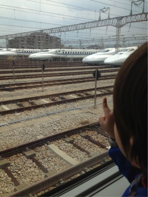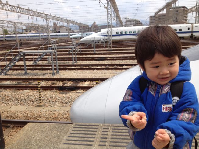 何日も大好きなお外に出られなかったから、治ったら行こうね~♪と約束していたので、約束を果たすため、博多南の新幹線車両基地まで。